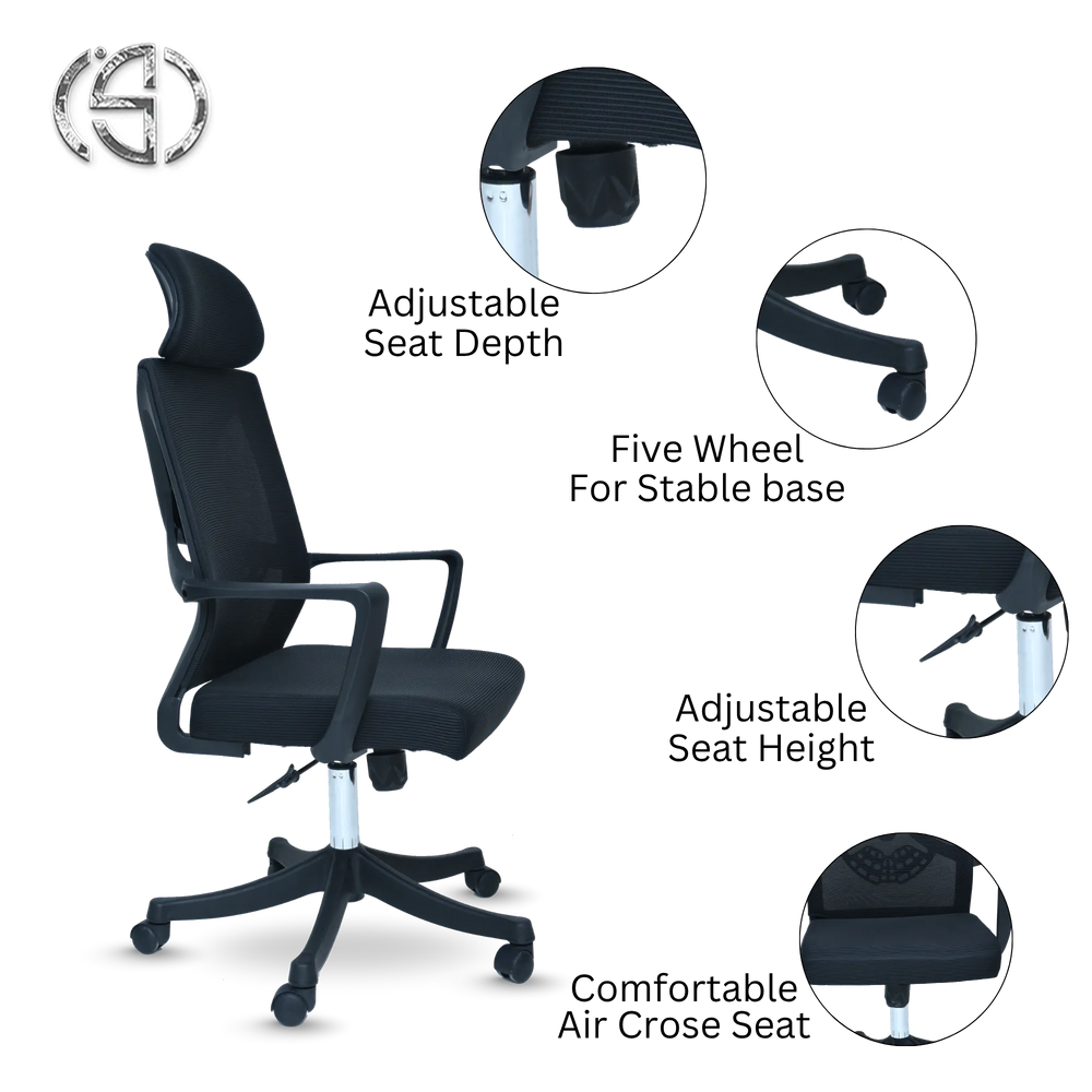 Stay cool and comfortable all day with this high-back mesh office chair. The breathable mesh construction promotes excellent air circulation, making it an ideal choice for long hours. The ergonomic design includes a dedicated, Adjustable Headrest to provide tailored support for your neck and head.