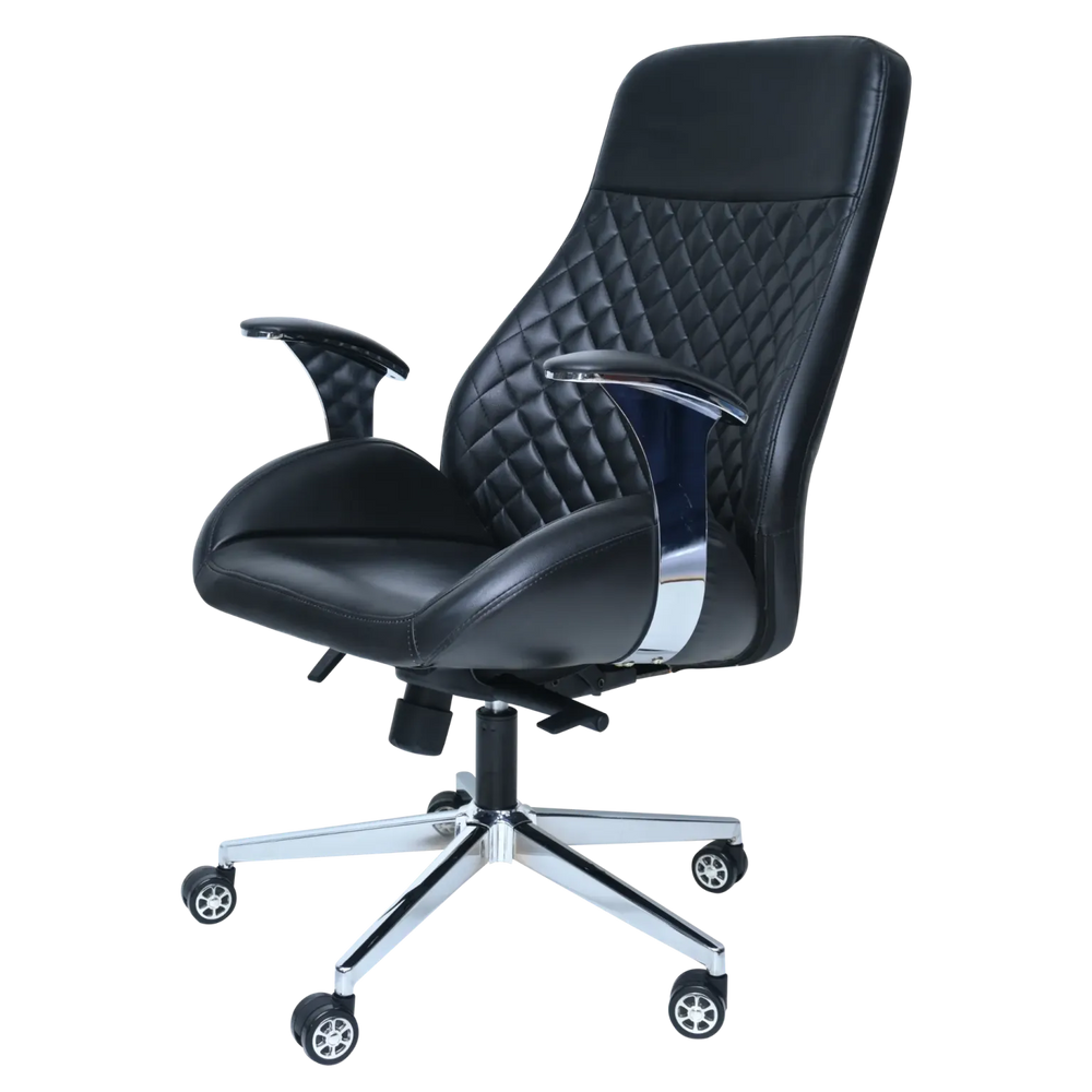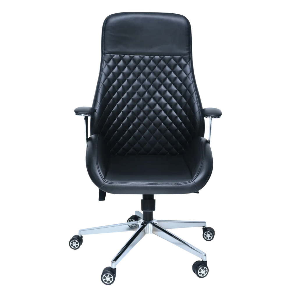 Add a sophisticated touch to your office with this diamond-quilted executive chair. The rich texture and chrome accents create a luxurious aesthetic, while the generous padding for extra comfort ensures all-day support.