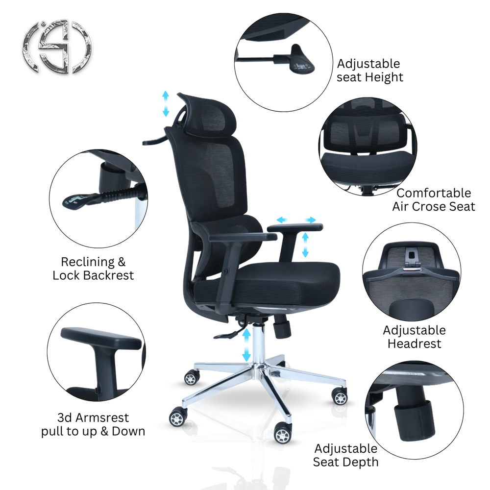 This chair is engineered for a personalized fit with numerous controls: Easily set the Adjustable Headrest for neck support and utilize the Reclining & Lock Backrest to find your preferred sitting or resting angle. Customize the fit to your body and desk height with the Adjustable seat Height and Adjustable Seat Depth. Furthermore, the highly functional 3D Armrests can be pulled up & Down and adjusted laterally, providing perfect support to minimize shoulder and wrist strain. It is the ideal choice for dedicated professionals needing comprehensive, all-day support.