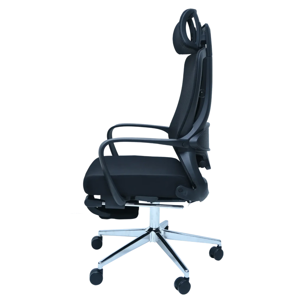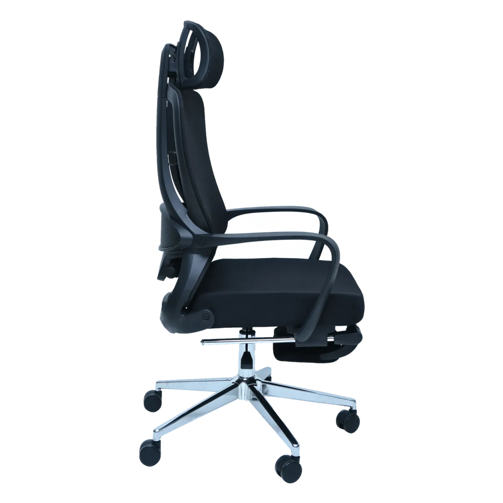 Experience the pinnacle of ergonomic seating with this full-featured mesh office chair. Designed for maximum support and cooling, it utilizes a highly Comfortable Air Crosse Seat and backrest to ensure continuous airflow. This chair is perfect for both intense work and restorative breaks, thanks to the integrated, Comfortable Foot Rest and the Reclining & Lock Backrest function, which allows you to lean back and secure your perfect resting angle.