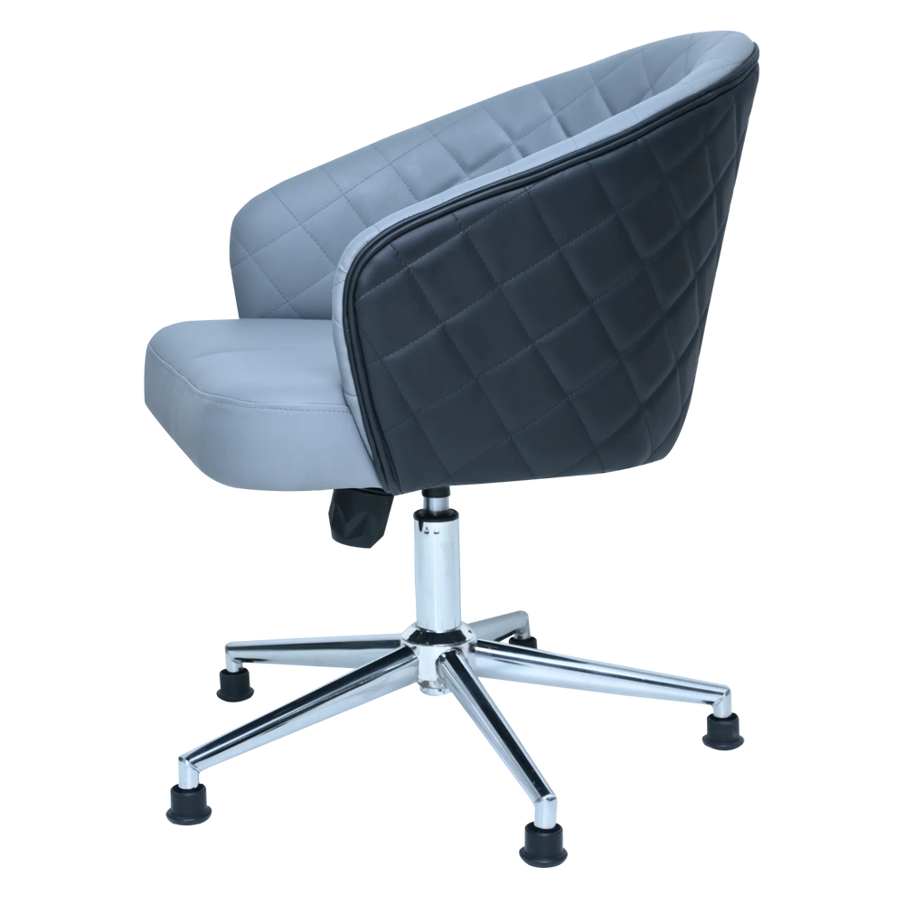 Elevate your interior design with this chic Two-Tone Quilted Accent Chair. Its distinctive grey and black design, combined with the sophisticated quilted back, makes it a perfect addition to a modern office, vanity, or creative workspace. The chair is generously padded for extra comfort, ensuring a pleasant seating experience.