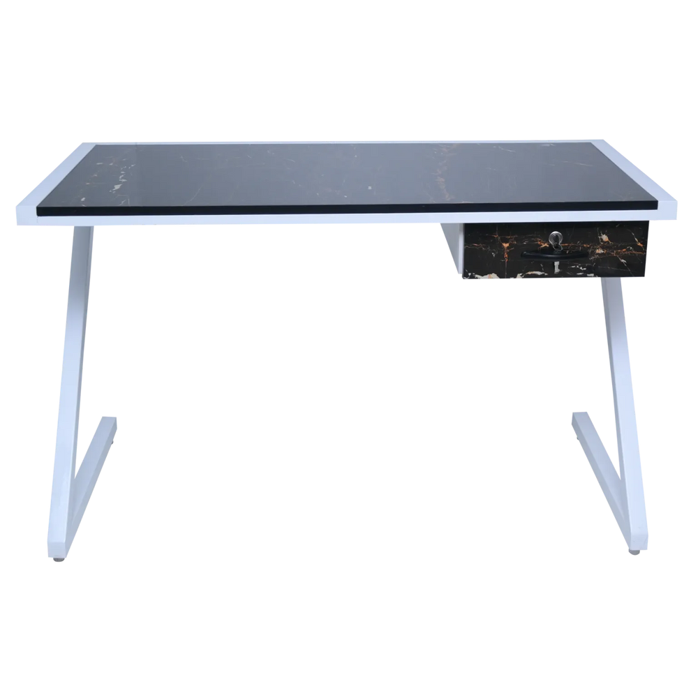The table features a spacious tabletop with clean, minimalist lines, providing ample room for writing, reading, and computer work. Some models also include integrated drawers or open shelves for additional storage, helping you keep essentials within easy reach while maintaining a neat, organized desk area.